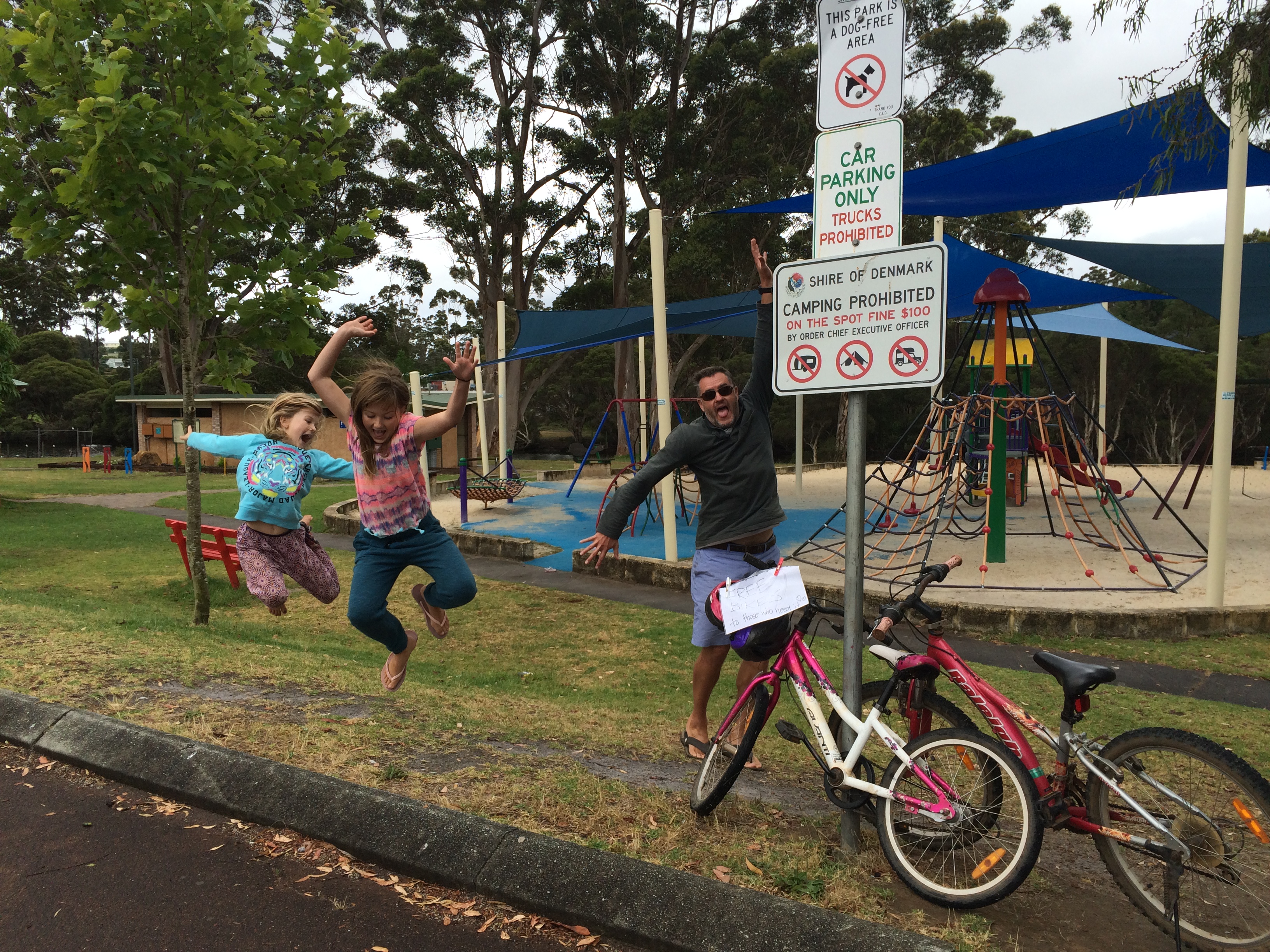 That said, Lucia & Chelsea farewelled their bikes today on our departure from Denmark. We only have around 4-weeks until home and a lot of that last leg will be many overnight stops up to Kalgoorlie and across the Nullarbor. Daz does most of the hard yards with hooking the bikes up & down, gets a bit pi*#+d off at times, and always ends up filthy. This letting go of their bikes is the girls’ gift to Dad!